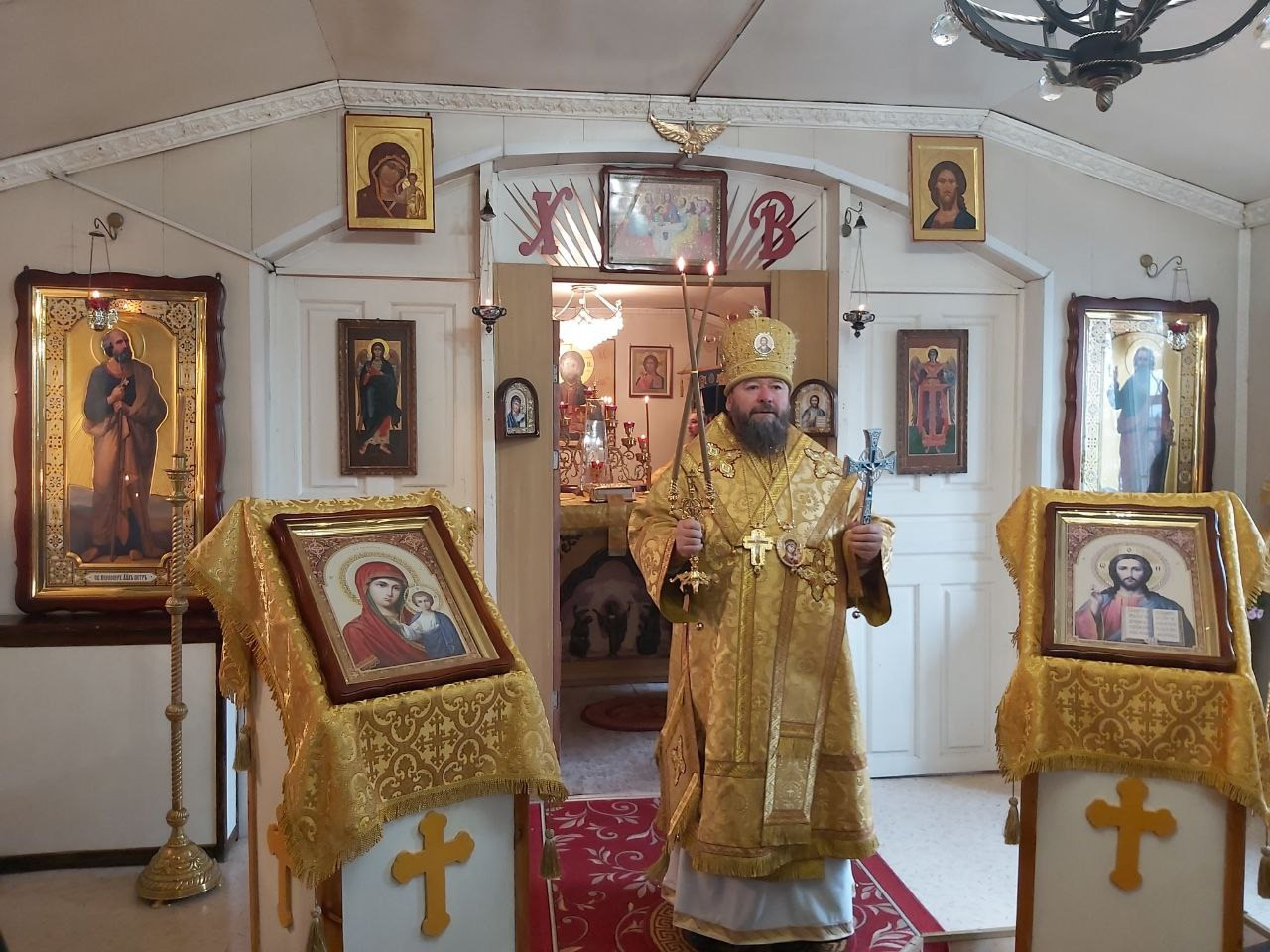 По заамвонной молитве владыка Макарий совершил славление и молитву святителю Ионе, епископу Ханькоуского.