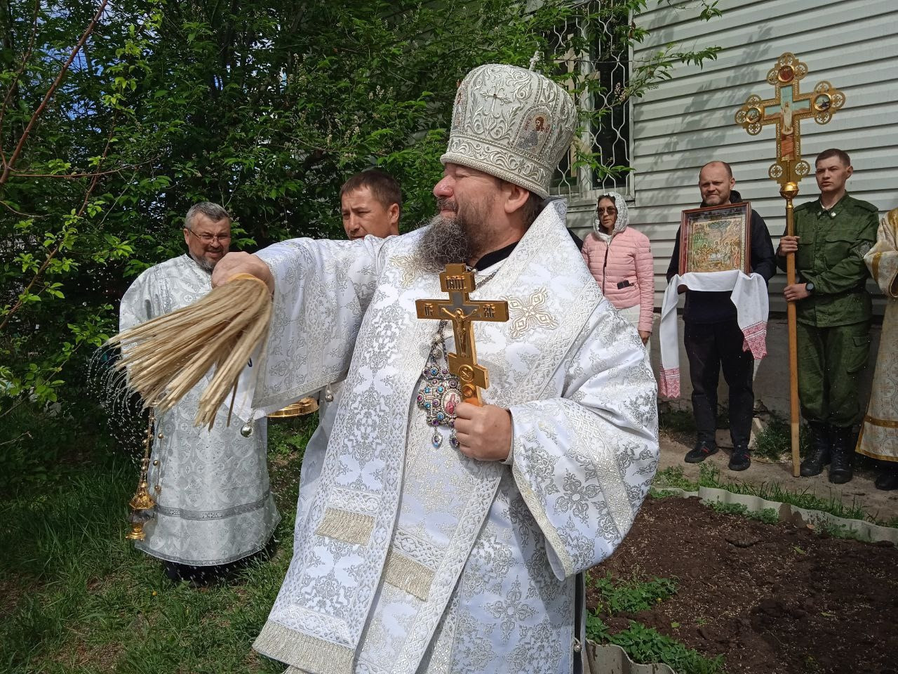 После Литургии епископ Макарий совершил «Последование молебного пения, певаемого во время бездождия» и праздничный крестный ход вокруг храма.